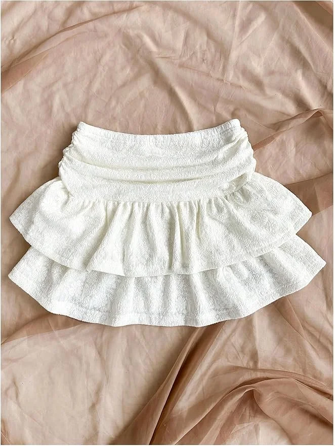 White Ruched Boho Mini Skirt