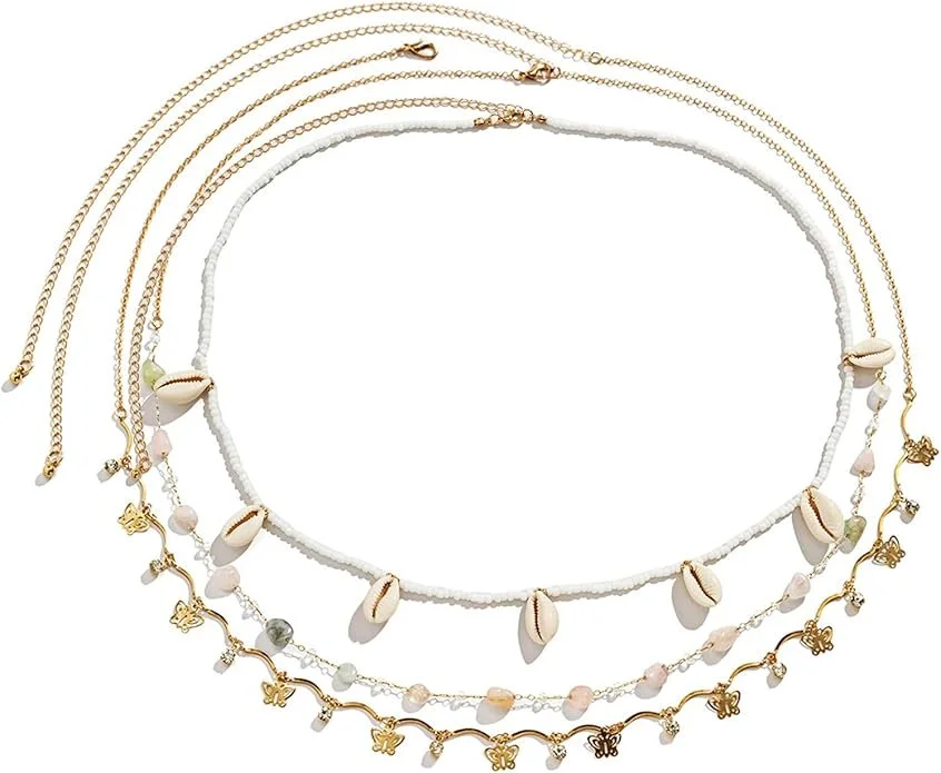 3 Pc Seashell, Crystal, Butterfly Waist Chains