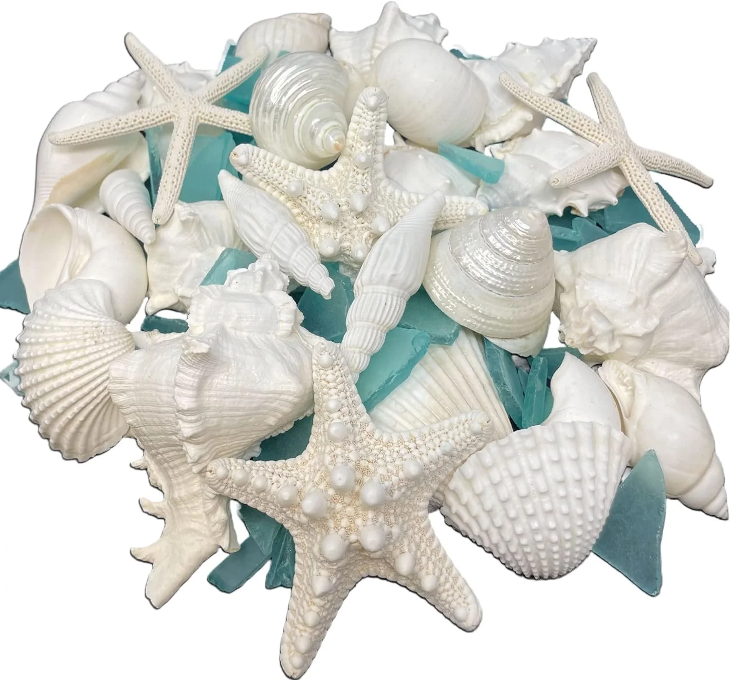 Mixed Assortment of Sea Shells, Starfish & Sea Glass - 1.5 lbs Set