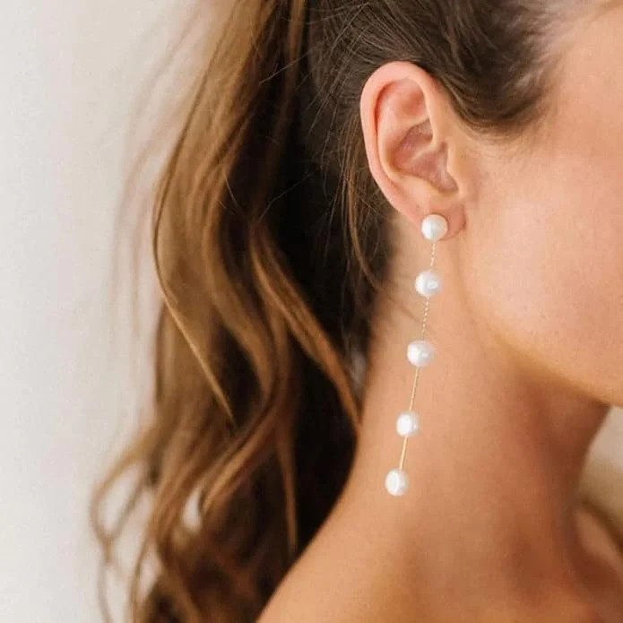 14k Gold/Silver Plated Pearl Drop Earrings