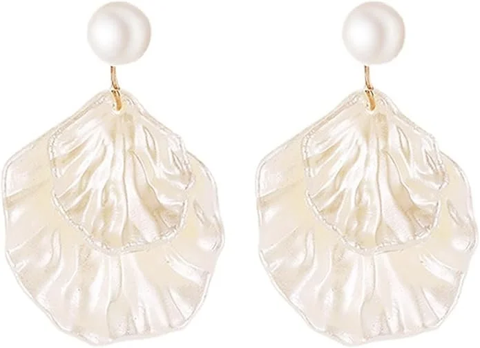 Golden Pearl Shell Drop Earrings