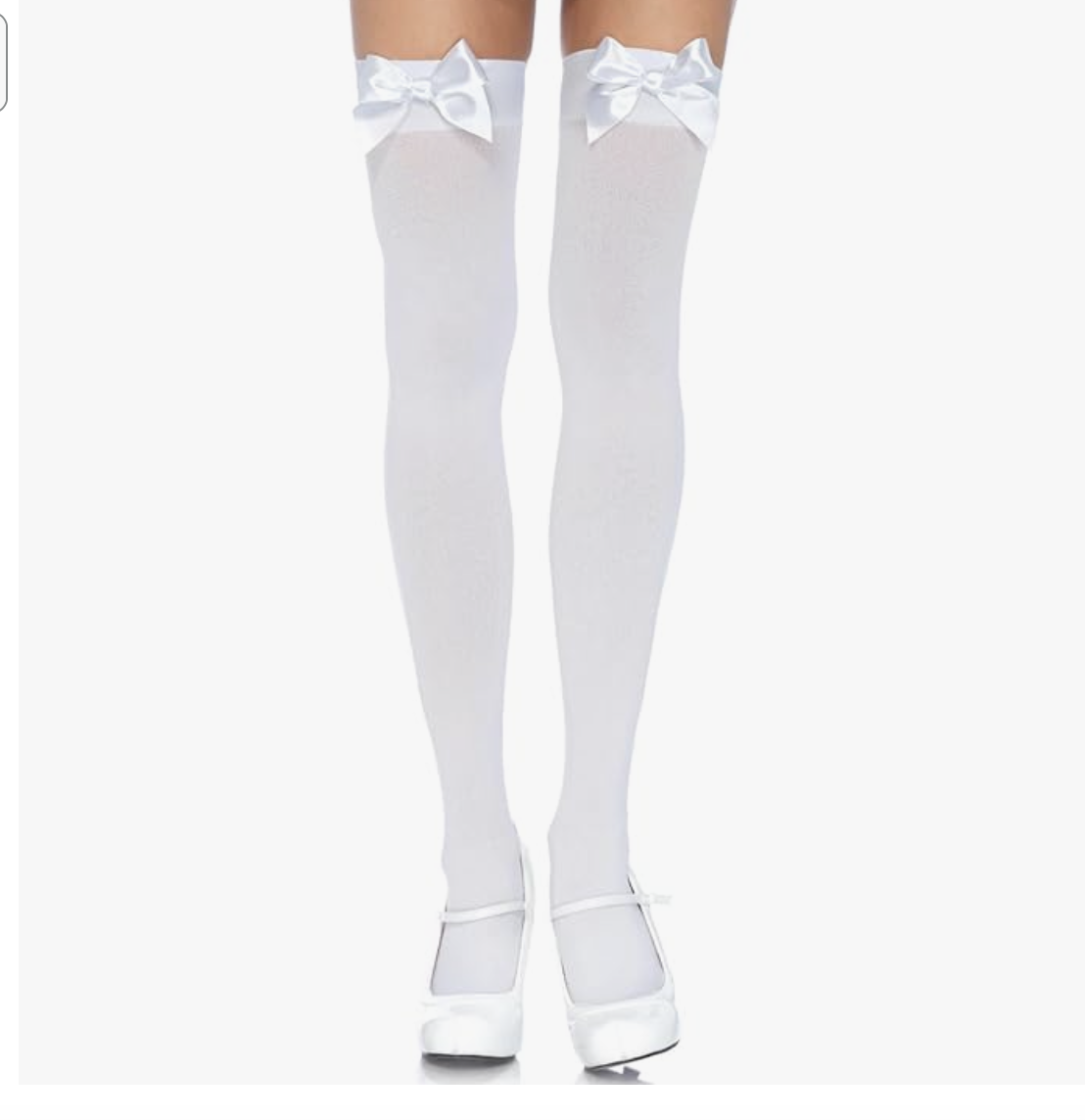 Women's Sheer Satin Bow Accent Thigh Highs - Both Black/White