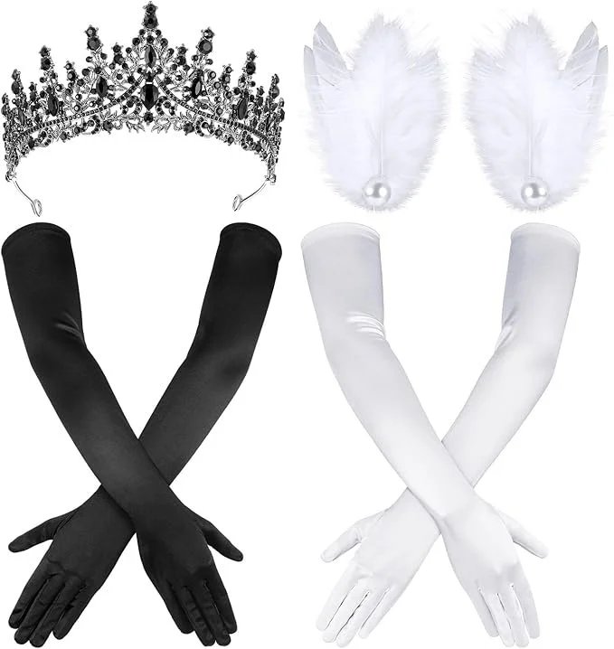 White Swan Black Swan Tiara, Feather Clips, Dual Gloves